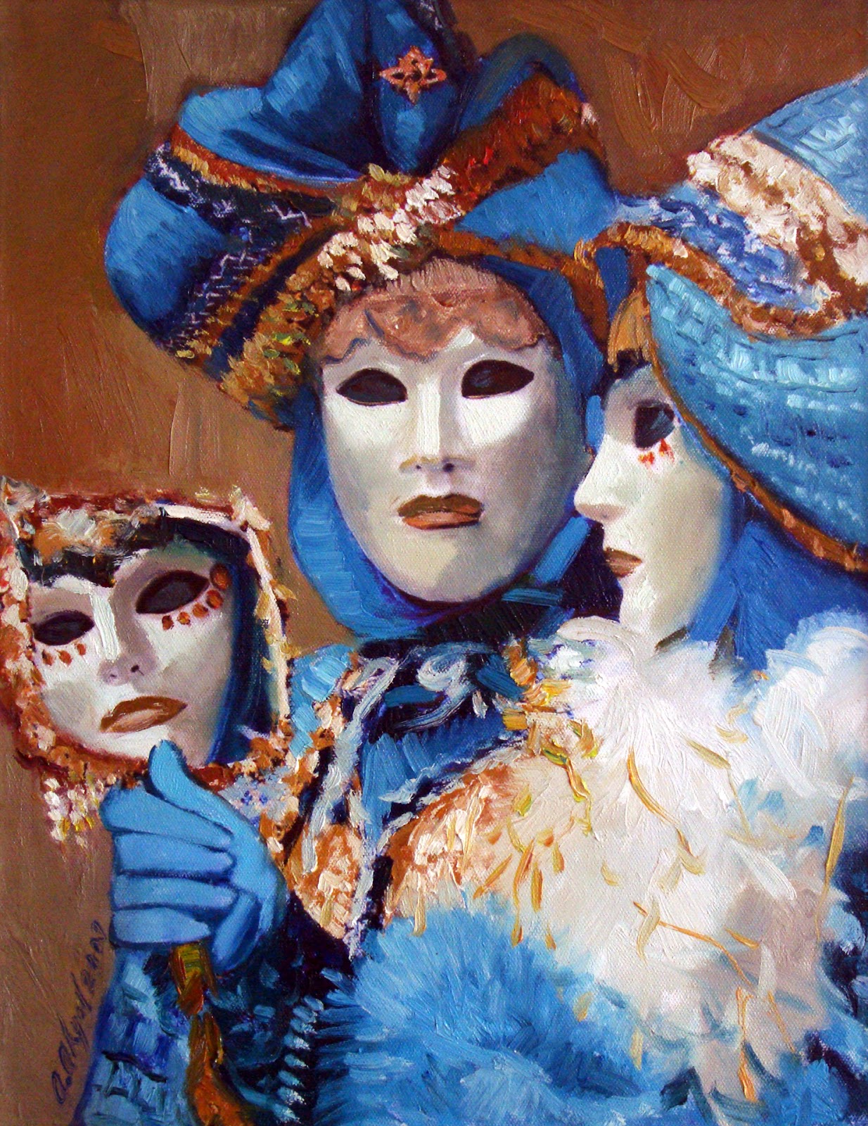 Soğuk ve sıcak renkleri aynı çerçeve içerisinde dengeli bir biçimde kullanıyor sanatçı Ayla Akyol. Güzelliği, zarafeti, inceliği, dostluğu, sevgiyi, arkadaşlığı platonik bir aşkı anlatıyor maskelerin ardındaki ince ruh gibi… “